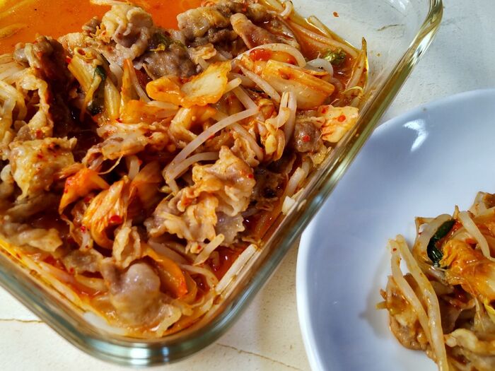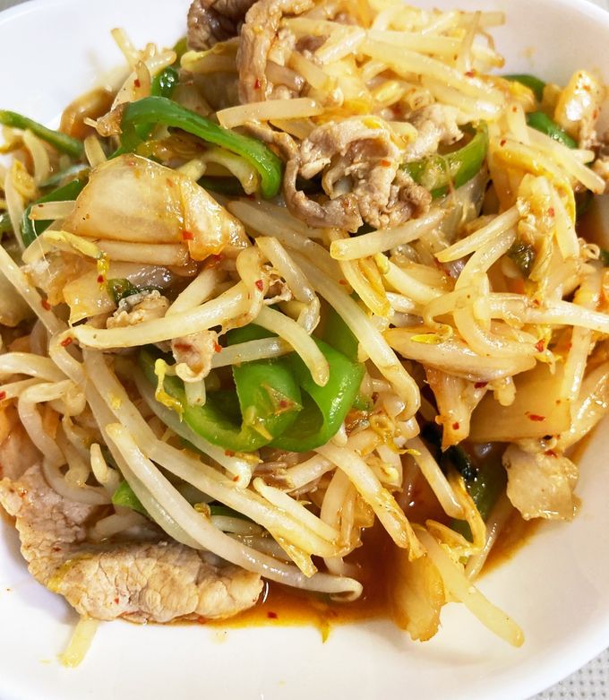 どこかで食べた事がある味? 大豆もやしと玉ねぎの豚キムチ の作り方内田吉則 食×ITの複合作家。
