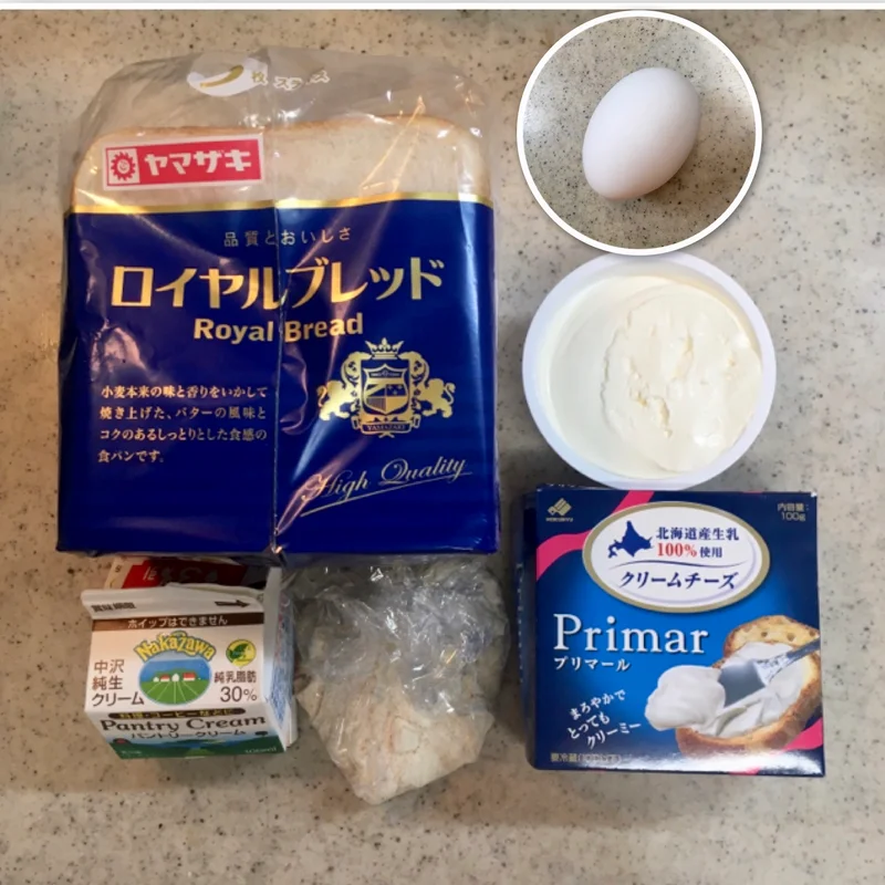 バスクチーズケーキトースト ①ボウルにクリームチーズ100g、砂糖40gを入れよく混ぜる ②生クリーム100mlを3回に分けて入れ混ぜる。③卵1個を入れ、さらに混ぜる ④4枚切り食パン全体の表面をスプーンで凹ませる ⑤クリームを流し入れ、トースターで7分焼けば完成! ☆3。