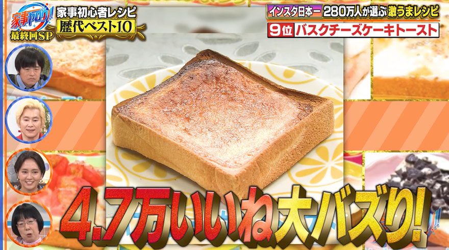 テレ朝POST »『家事ヤロウ!!!』レシピ マネする人続出!7分で本格スイーツの味「バスクチーズケーキトースト」。
