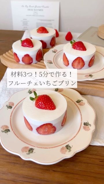 sachiのおうちカフェ 簡単お菓子作り&お取り寄せスイーツ on Instagram: "材料3つ!5分で作る!フルーチェいちごプリン👩🏻🍳🍮🍓tiktokで好評だったので🫶💕 材料 カップ4個分☑︎フルーチェ 1袋 ☑︎牛乳 300ml ☑︎ゼラチン 10g トッピング ☑︎いちご☑︎生。