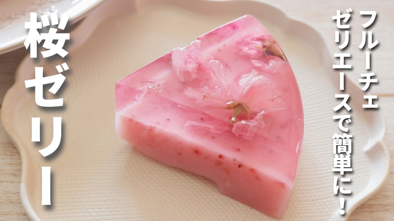 桜ゼリー フルーチェとゼリエースで簡単 桜といちごのゼリー - YouTube。