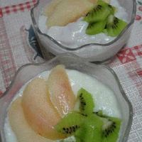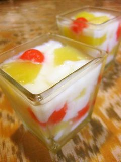 フルーツゼリーとヨーグルトでフルーチェ風デザート♪。