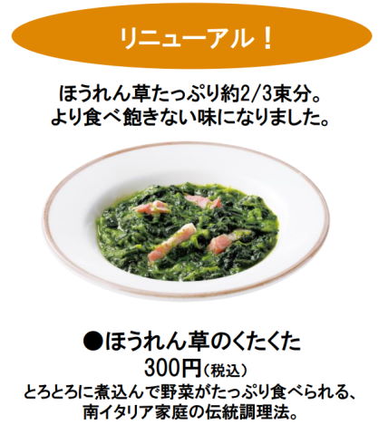 サイゼリヤ ほうれん草のくたくた を世界一詳しく調査 新メニュー 進撃のグルメチェーン店、コンビニ、新メニュー、新商品、スイーツなどの最新グルメを最速でお届け。