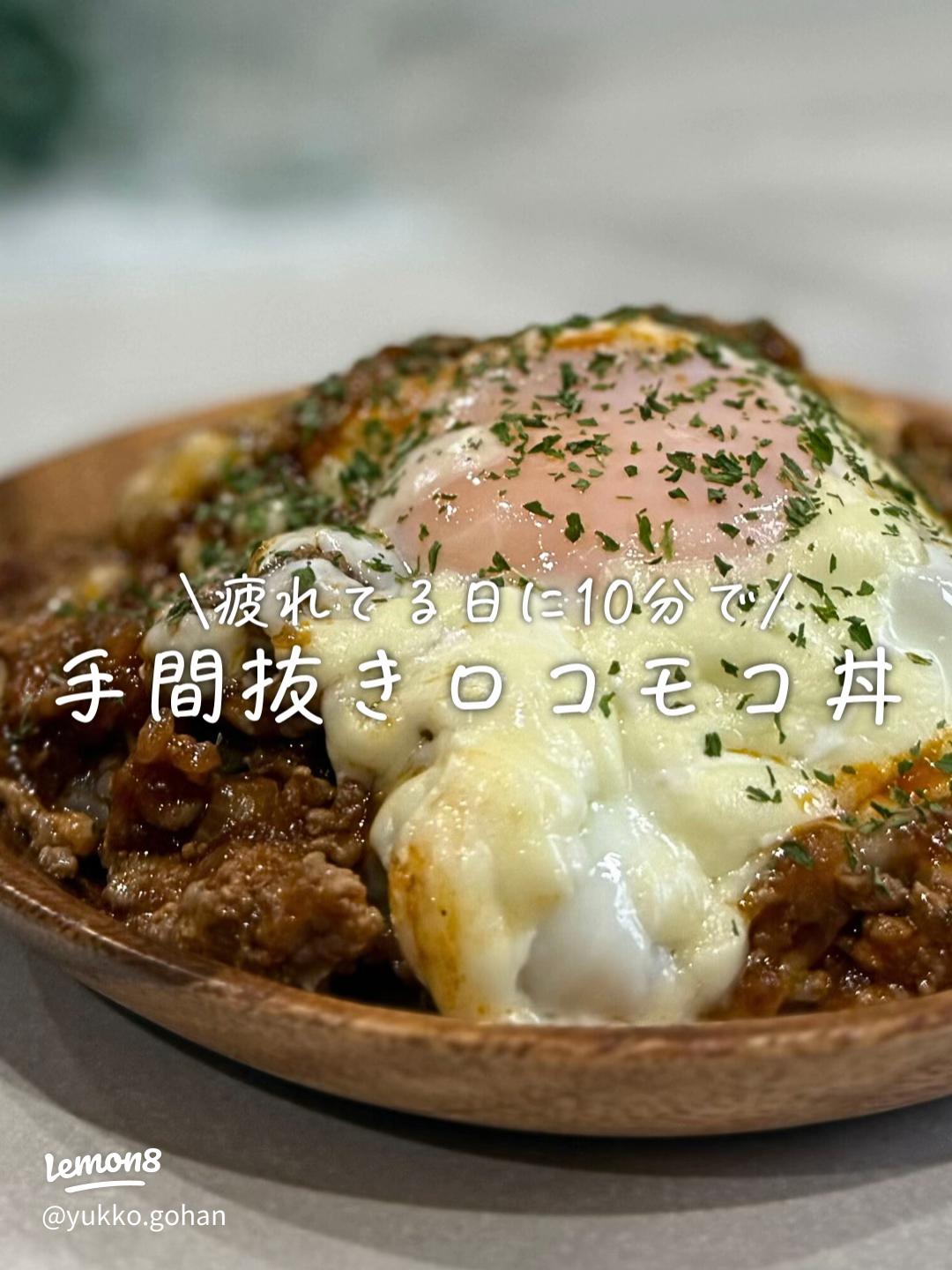 ロコモコ丼✨ , @yoshiki_diet_recipe さんの投稿をお借りしました, @yoshiki_diet_recipe←痩せレシピ公開中📝, 10分で作れるロコモコ丼☺️, 作りたいって思ったら 保存 すると, 調理もお買い物も楽です✨,✂︎——————————————————, ◽️材料 2人前 , ・合い挽き肉200g, ・玉ねぎ1 2個, ・卵2個, 🧂調味料,。
