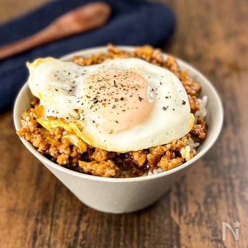 管理栄養士のおうちごはん▷ @hiro_recipe5 ひき肉ある?コメントで教えてね😘 🍳簡単すぎるロコモコ丼そぼろ丼材料 4人分 ・合い挽き肉約350g ・卵 4個 Aケチャップ 大さじ2〜3 A焼肉のタレ 大さじ2 A塩・こしょう、ナツメグ 少々 ① 合い挽き肉を炒め、色が変わっ。