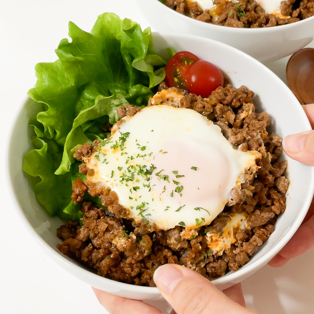 合い挽きミンチ ロコモコ丼 (384 無料画像)