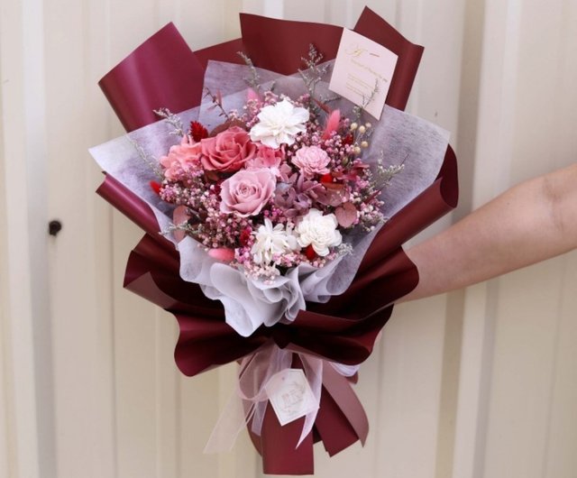 エバーラスティングローズ レッドローズ ドライブーケ 誕生日プレゼント バラの花束 バースデーブーケ バレンタインデー - ショップlookingforflower ドライフラワー・ブーケ - Pinkoi。