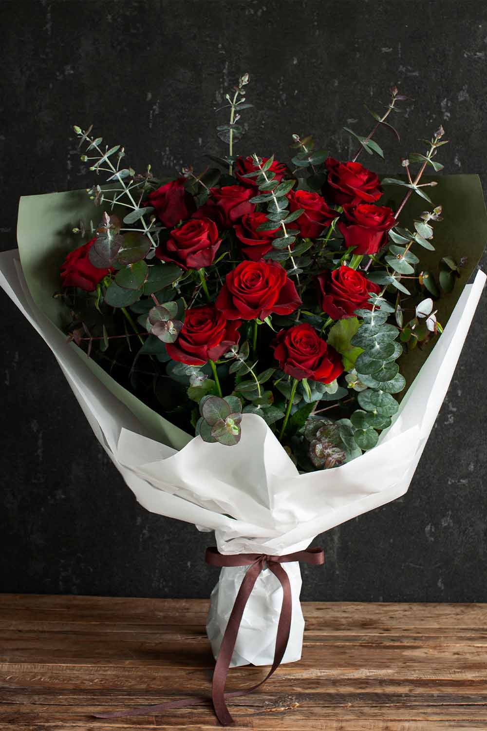バラ と ユーカリ アレンジブーケ バラ 20本 40cm薔薇 花束 ローズ 地虹指定可 生花 赤 ピンク プレゼント 花 ギフト 誕生日 植物田原市 切り花 切花 - 愛知県田原市ふるさとチョイス - ふるさと納税サイト。