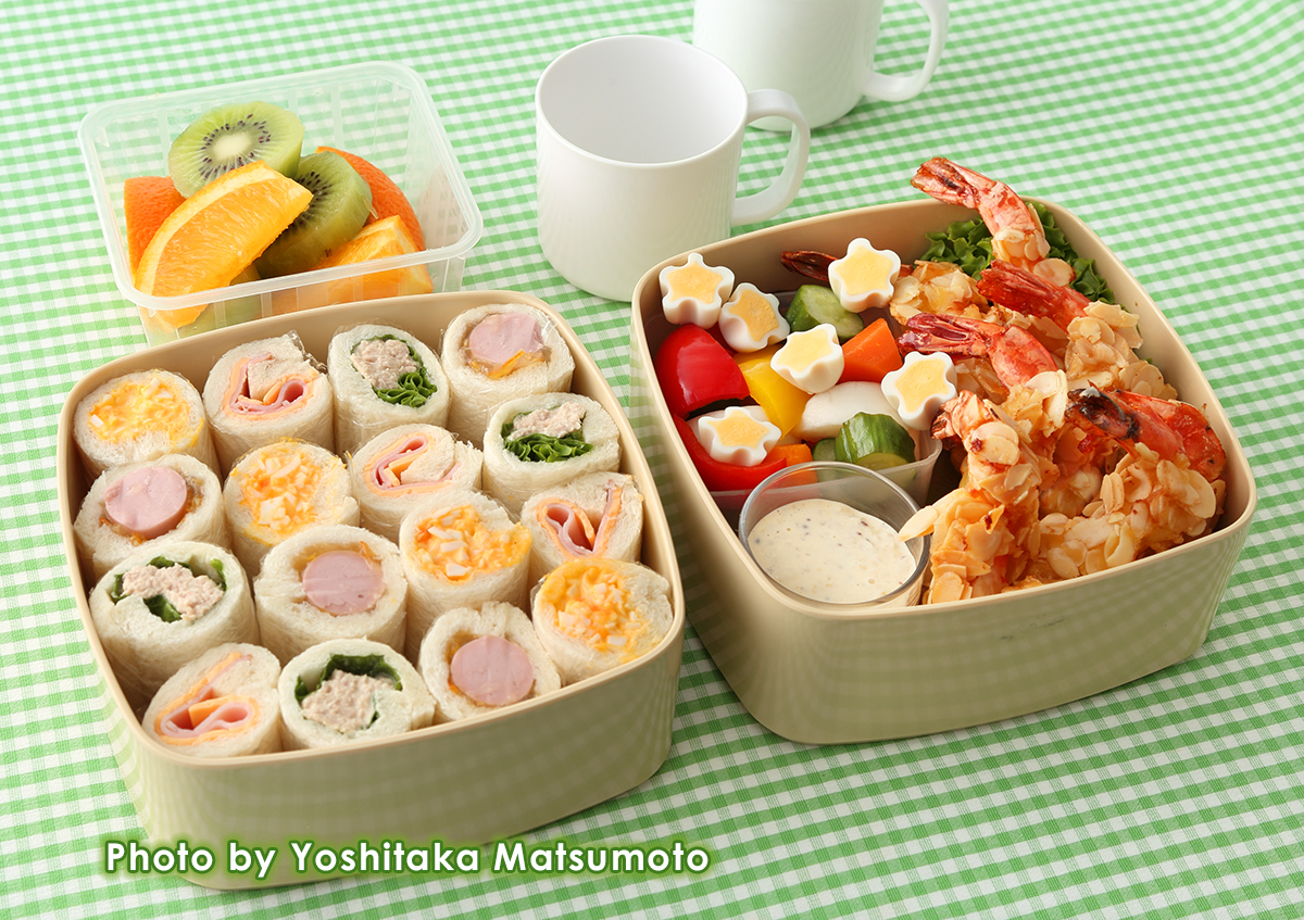 大人は具だくさんサンド、子どもは食べやすいロールサンドクルールはりま— おやこべんとう。