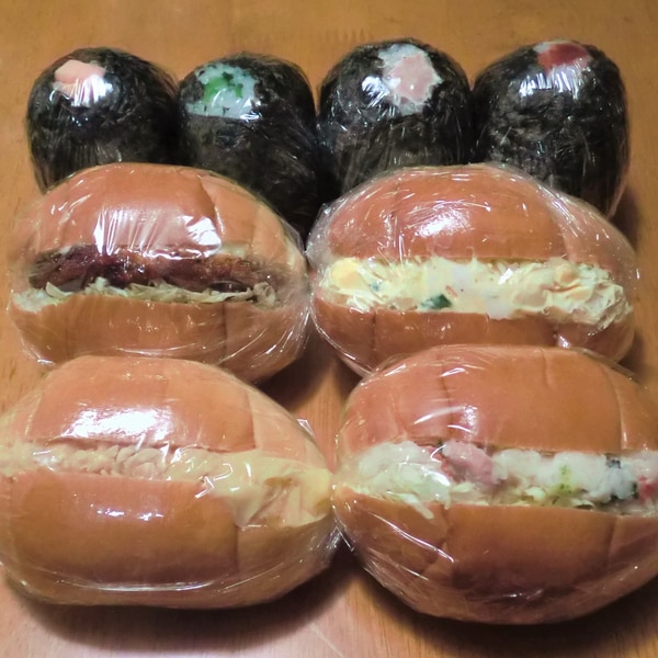 こどものお弁当★手持ちおにぎり&バターロールサンド。