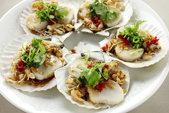 家で中華 殻付きホタテ貝と春雨のニンニク風味蒸し80C。