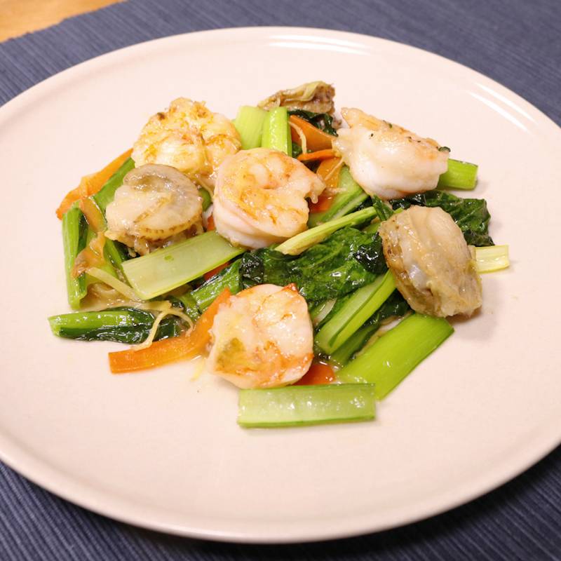 海老とほたて貝柱のマヨネーズ炒めのレシピ 作り方 紹介料理教室のホームメイドクッキング。
