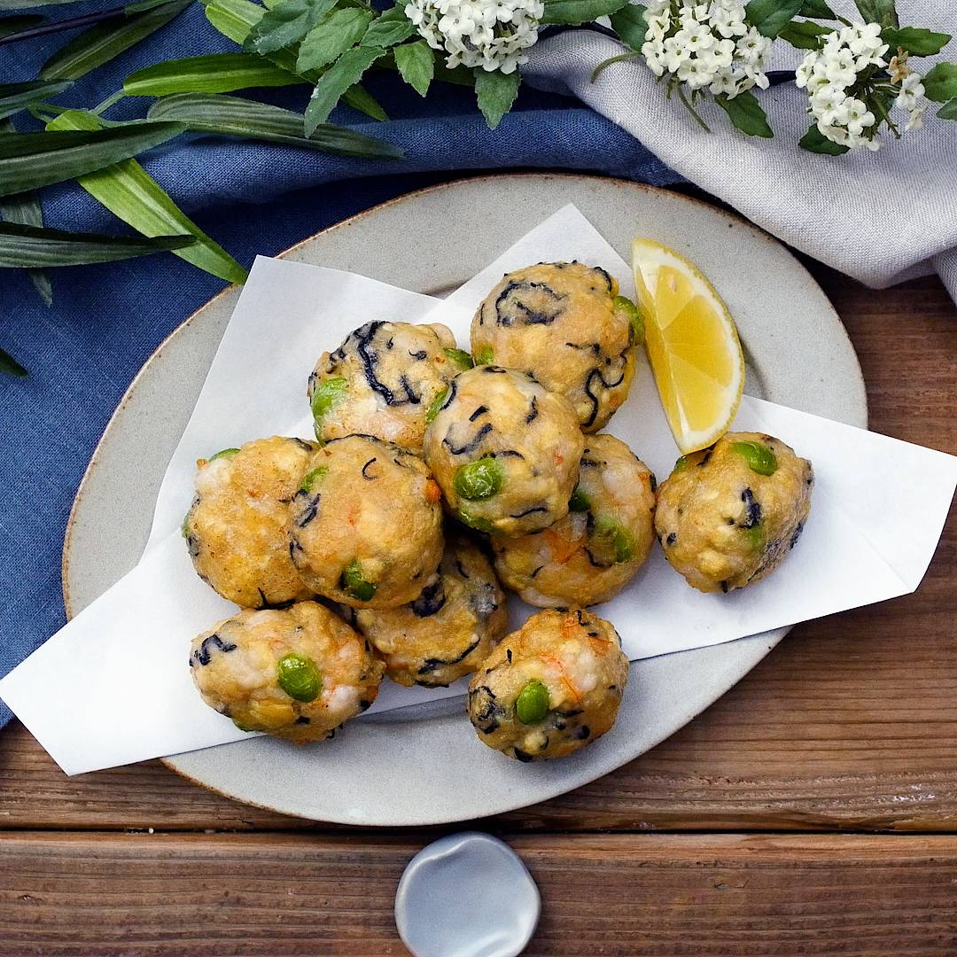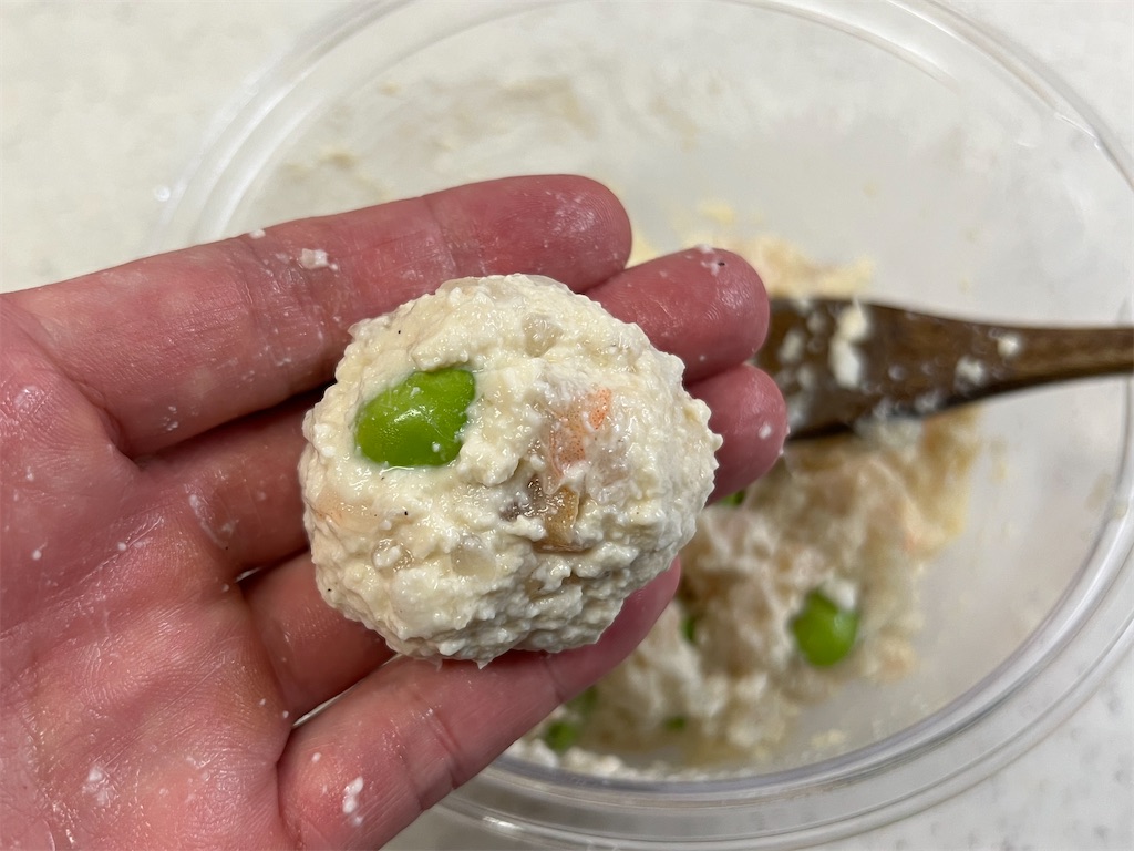 豆腐でふわっふわおつまみ!えびとひじきのふんわり揚げ。