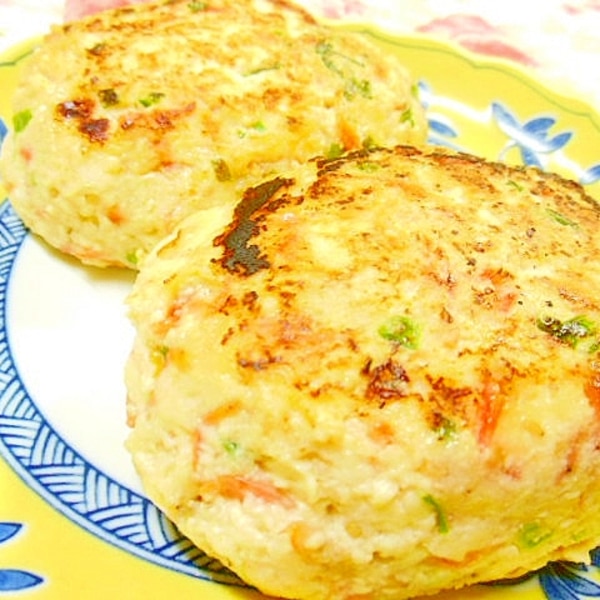 豆腐とはんぺんのふわふわ焼き揚げずに簡単!がんもどき風おかず。