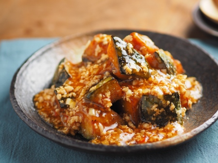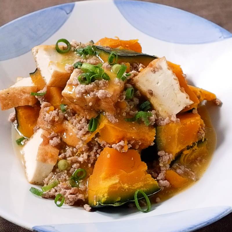 かぼちゃと厚揚げの甘辛炒め - Plant Based Diary。