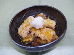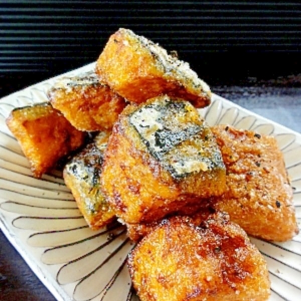 少ない油でカリカリッ♪お酒がすすむ味付け「かぼちゃ唐揚げ」。