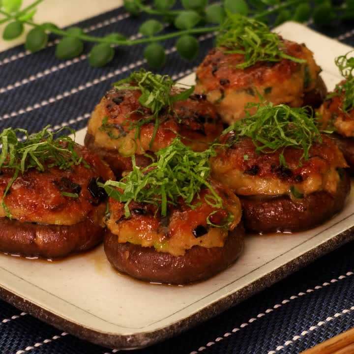 しいたけ肉詰め 鶏ひき肉レシピ Shiitake Mushrooms Stuffed With Meat Recipe パンダワンタン-YouTube。