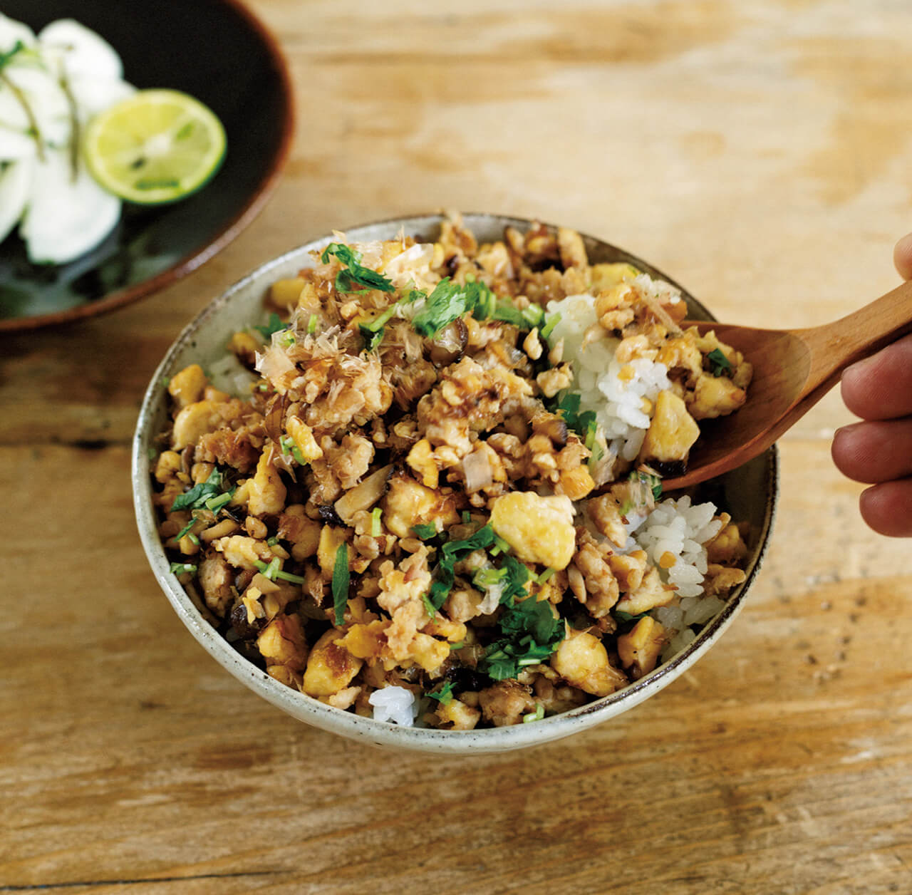 「豆腐としいたけの鶏そぼろのっけめし」レシピ コウケンテツさん。
