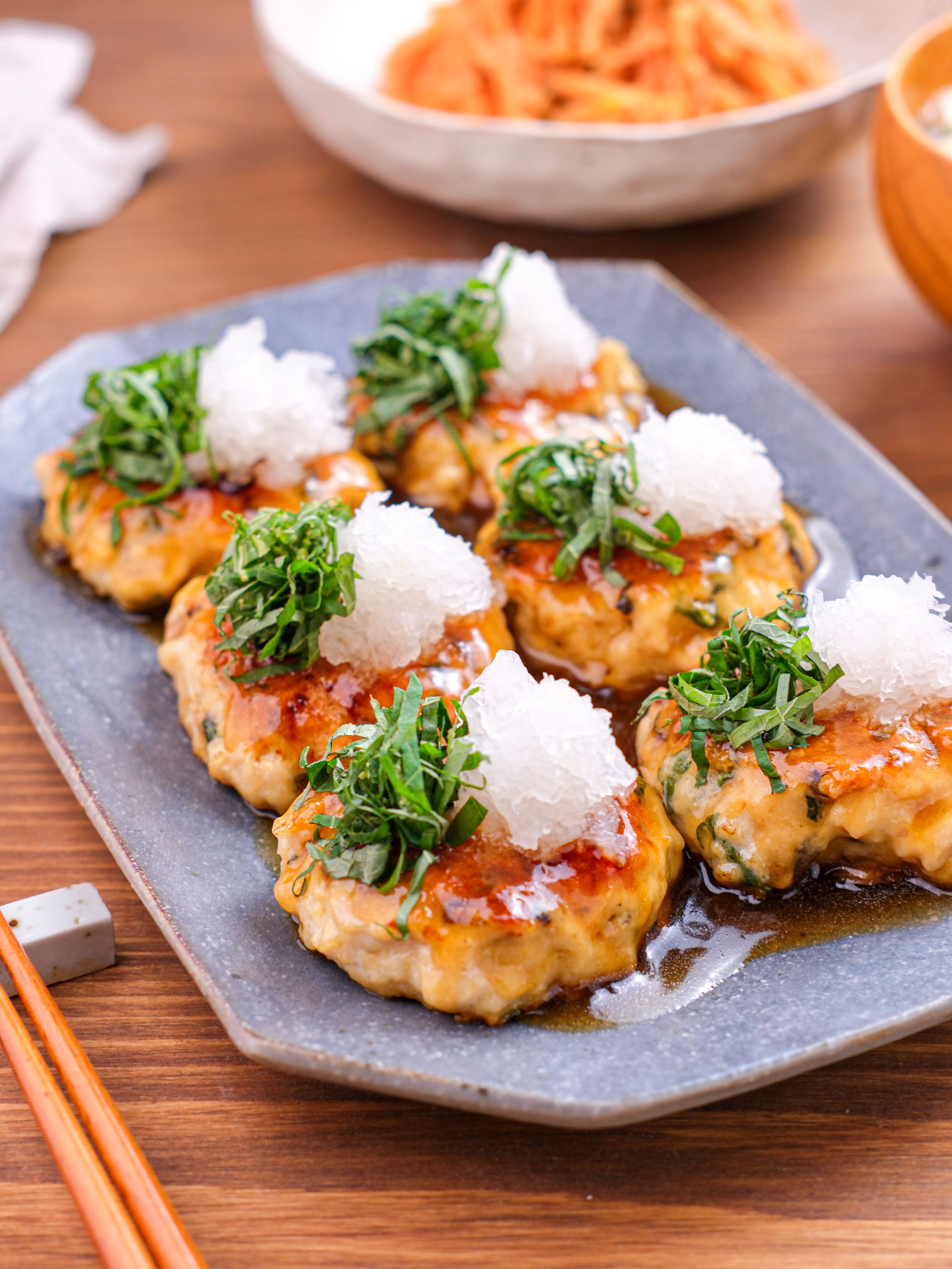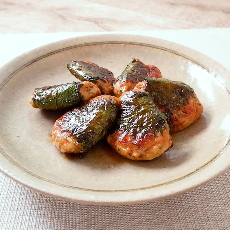 しいたけと青じその鶏つくね 和風な味わいがおいしい。