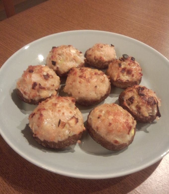料理酒でタネがふんわり、しいたけの海老鶏ひき肉詰め焼き。トースター任せで調理簡単おつまみ。 : SuperSlowIegohan毎日呑んでもダイエット&ボディメイクおつまみ。