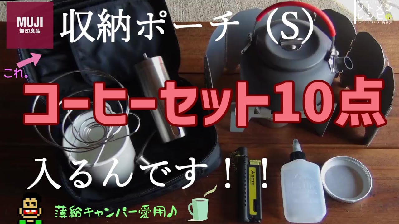 無印良品ギアソロキャンプ 収納ポーチ S コーヒーセット10点入ります!「これだけもってけばいつでもコーヒー飲めます!」 - YouTube。