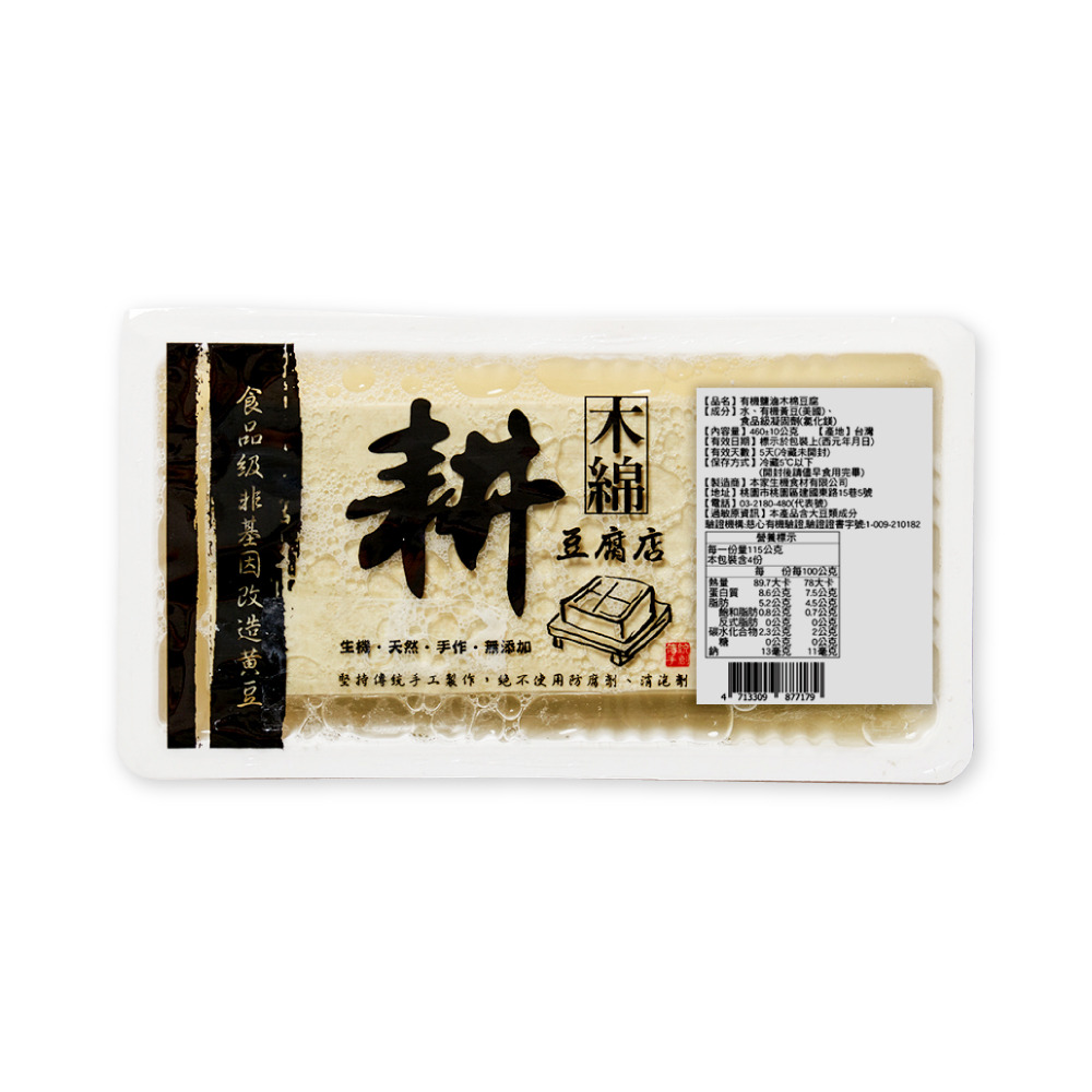 耕有機木棉豆腐Organic Firm Tofu 板豆腐460g 火鍋必備煎炒炸滷。