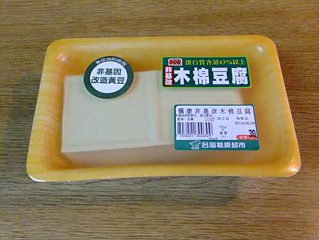 非基改豆腐: 油揚木棉豆腐,非基因改造黃豆製作而成本家生機食材有限公司。
