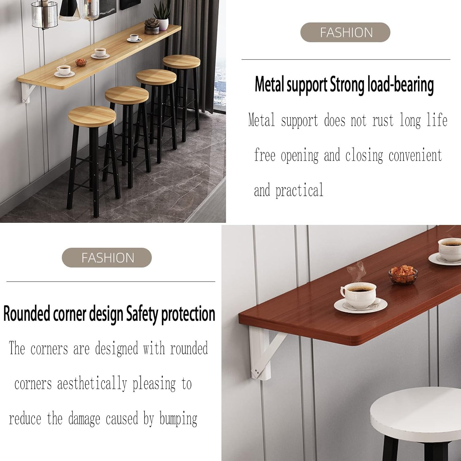 壁掛け折りたたみダイニングテーブル - カフェ、レストラン、小さなキッチンに最適な省スペース設計 - ミルクティーショップやバーに最レビュー特典 ダイニングテーブル木製 一人暮らし 半円 円形 1人用 2人用 壁寄せ 壁付け コーナー用 デスク 幅80cm 小さめ 変形 丸。