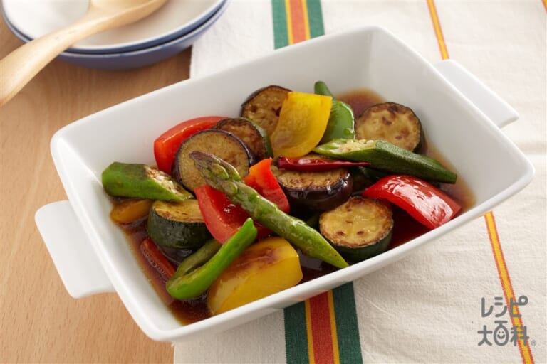 ズッキーニとオクラの揚げびたしだいどこログ 生協パルシステムのレシピサイト。