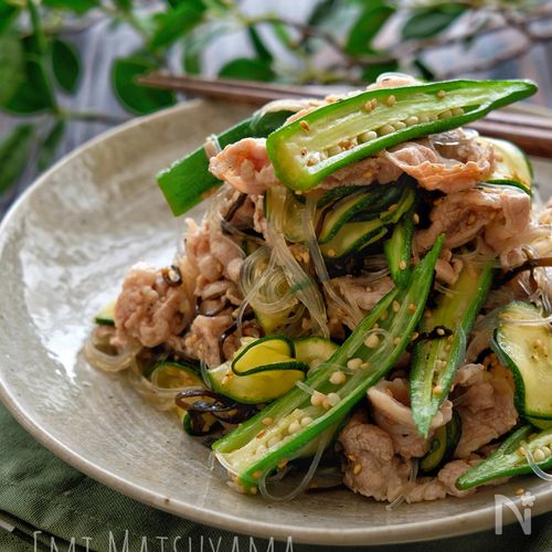 四川式回鍋肉の献立 副菜:やみつき!無限ズッキーニ、汁物:オクラともずくのネバネバスープ 献立・メニュー 味の素パーク たべる楽しさを、もっと。