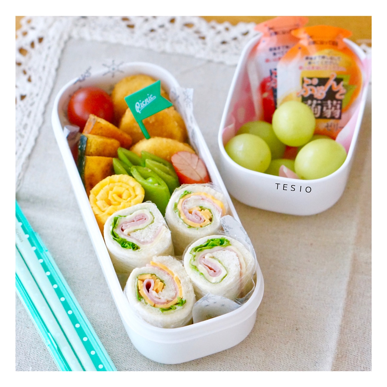 サンドイッチお弁当 クルクル可愛いロールサンドイッチ。