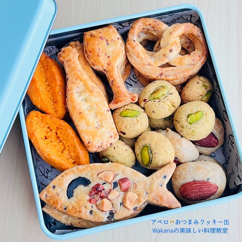 東京赤羽・香川塩味クッキー缶講座アペロ☆おつまみクッキー缶 4種類の塩味クッキー作りWakanaの美味しい教室 東京赤羽駅前 お菓子教室料理教室 紅茶教室 パン教室 プライベートレッスン専門。