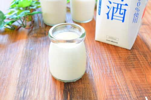 ゼラチンで簡単!卵なし!練乳がけ甘酒プリンのレシピ。