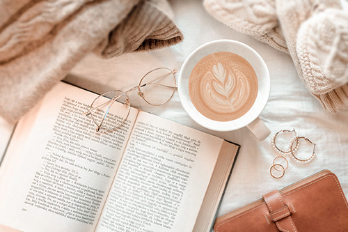 今日は寒いのでベッドでカフェラテ飲みながら読書しますのフリー画像おしゃれ・かわいい無料写真素材:GIRLY DROP。