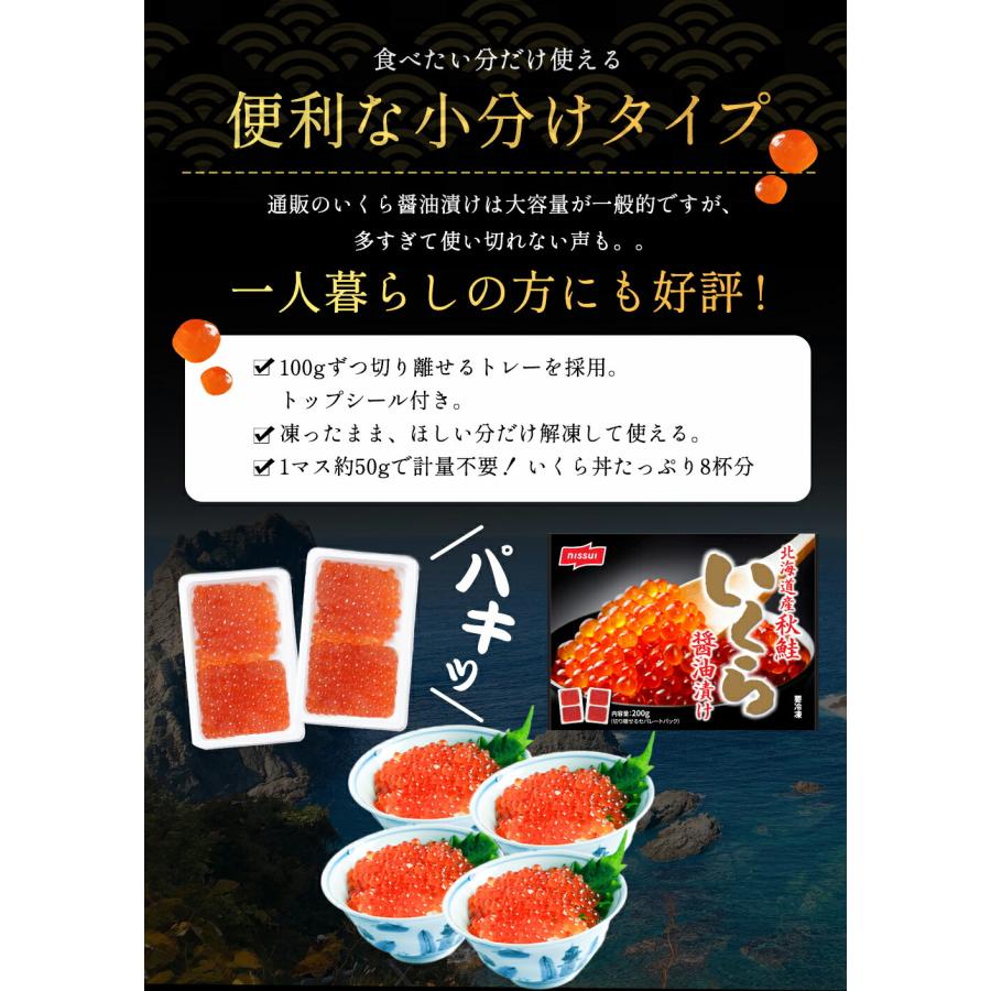 いくら 醤油漬け 冷凍 ニッスイ 北海道産 秋鮭 いくら醤油漬け 200g 冷凍食品 取り寄せ 9月11日~寄付額改定 醤油漬鮭いくら400g 200g×2パックイクラ 小分け いくら醤油漬 鮭いくら いくら醤油漬け 鮭 鮭卵 ikura 醤油いくら 冷凍いくら いくら北海道醤油鮭いくら。