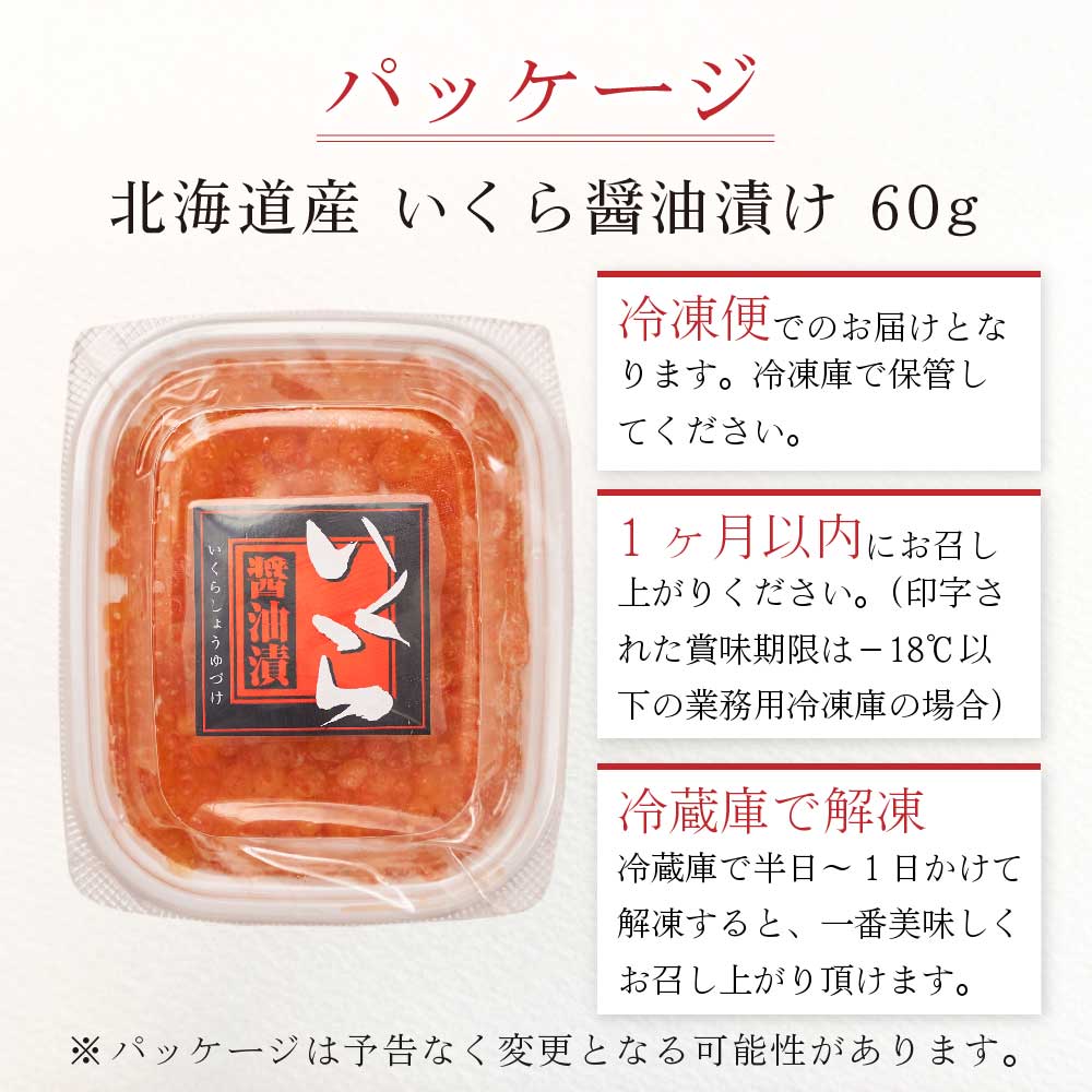 いくら 醤油漬け30g×2p× 1袋 合計60g 氷温熟成 鮭 イクラ 醤油漬 魚卵 小分け 冷凍 サケ 海鮮 魚介 魚 漬け 丼 鮭子鮭卵 いくら醤油 プチプチ 熟成 濃厚 イクラ醤油 お取り寄せ 宮城県 石巻市 まるたか水産。