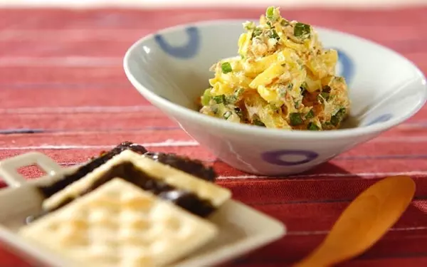 いかの塩辛のアレンジおつまみ。いぶりがっこの和風ポテサラレシピ。