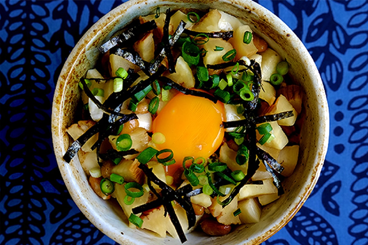 いぶり屋商品アレンジレシピ🌿ご飯がすすむ!お手軽いぶりがっこ丼一口目は卵を潰さずに納豆の粘りと山芋&いぶりがっこの歯ごたえを楽しみ、二口目に卵を潰して、具を混ぜて食べるのがお勧めです。いぶりがっこの香りが口の中いっぱいに広がりどんどんご飯が進み。