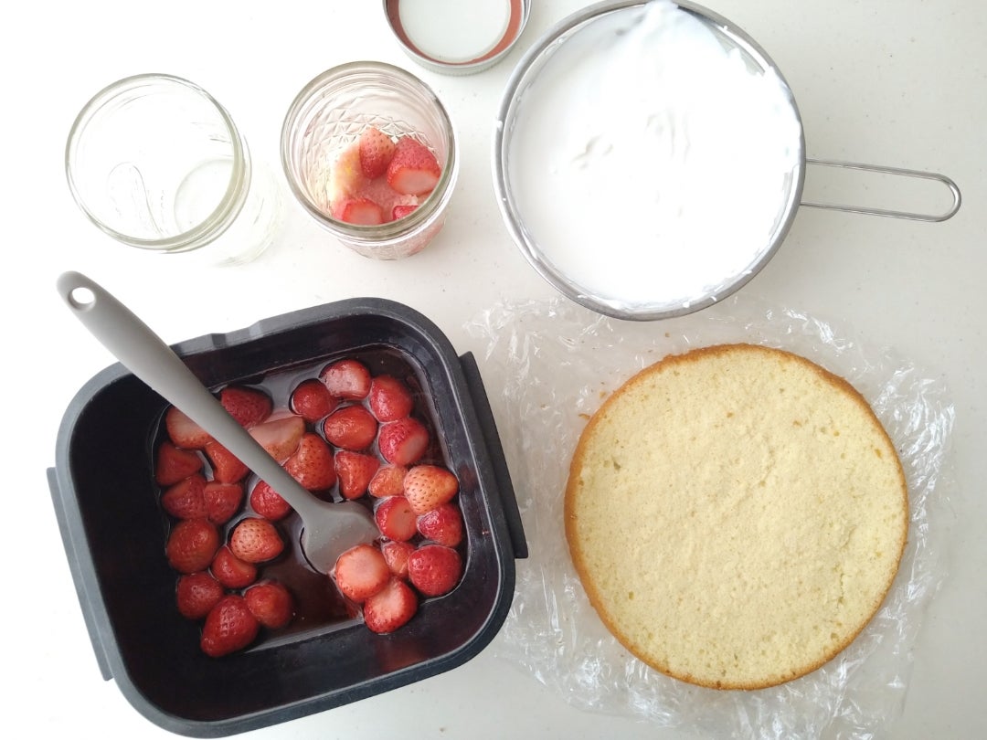 冷凍いちごでショートケーキ風デザート型にはまったお菓子なお茶の時間。
