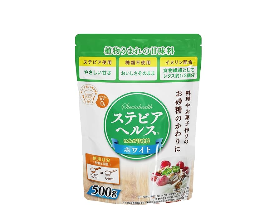 Amazon.co.jp:お砂糖のかわりに糖類不使用食物繊維イヌリン配合植物由来甘味料スッキリとした甘さ大容量 日本リコスステビアヘルス ホワイト 500g : 食品・飲料・お酒。