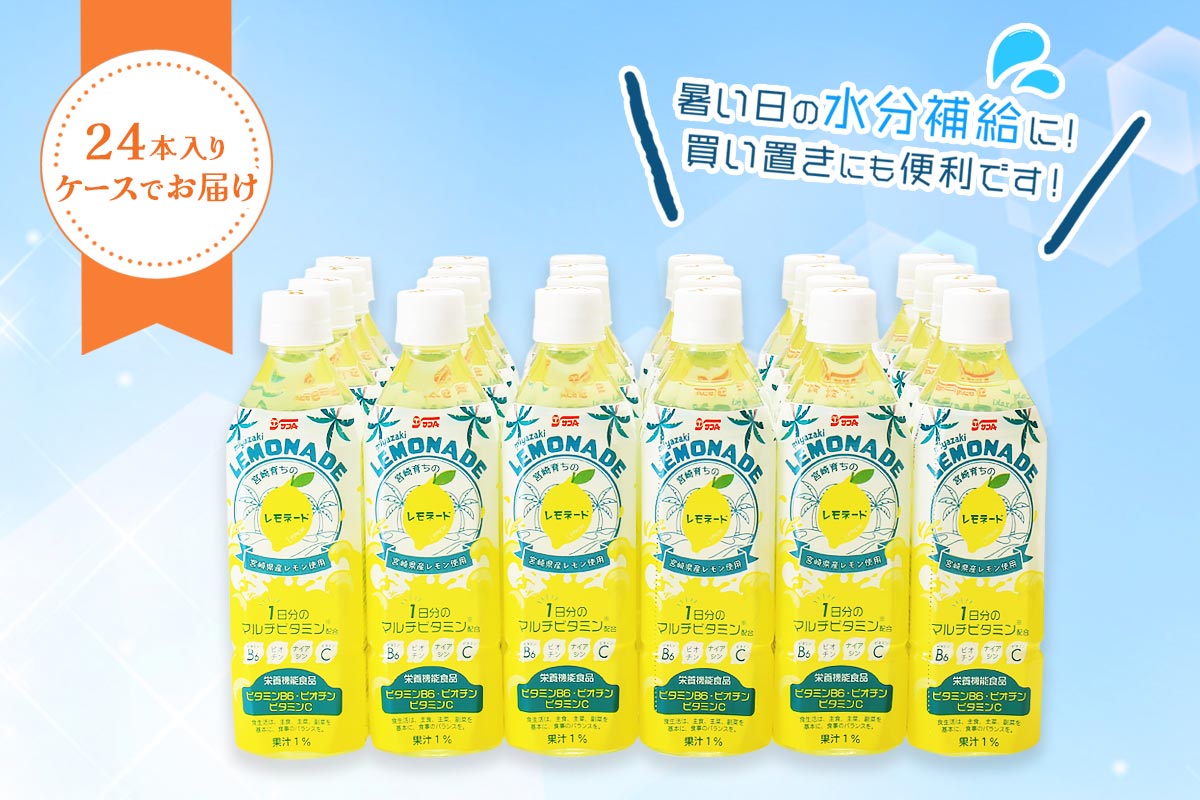 サンA宮崎育ちのレモネード500mlPET 24本入り×2ケース 飲料 栄養機能食品 レモン 檸檬 マルチビタミン配合 セット ジュース PET長期保存 備蓄 送料無料マイナビふるさと納税。