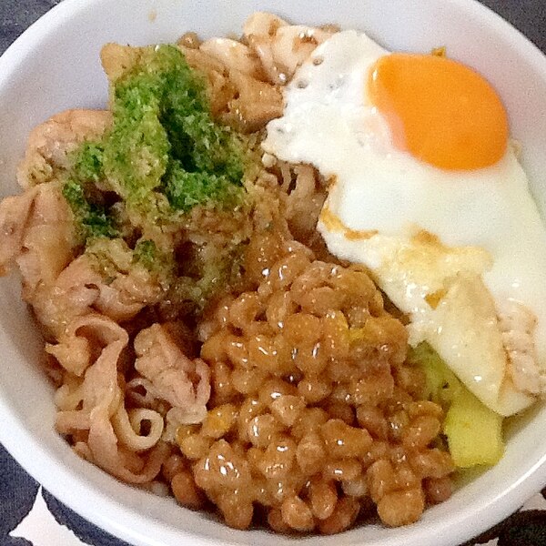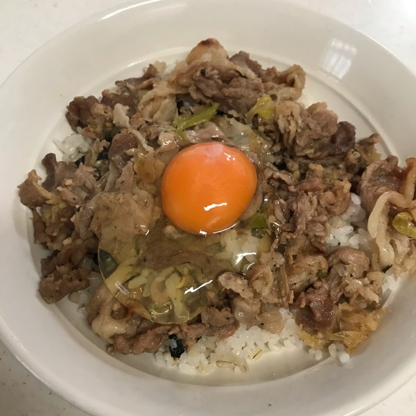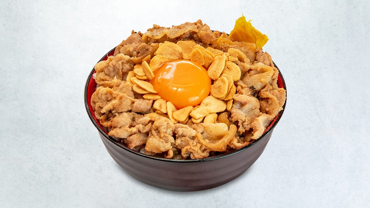 スタミナガーリック豚丼 豚脂にんにく醤油だれ使用。
