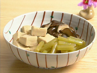 乾物を活用♪ 干ししいたけと高野豆腐のレンジ含め煮。