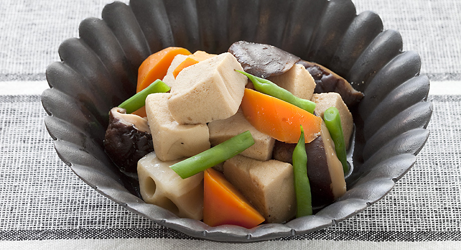 基本の和食 戻し不要!高野豆腐と干し椎茸、にんじんの含め煮。