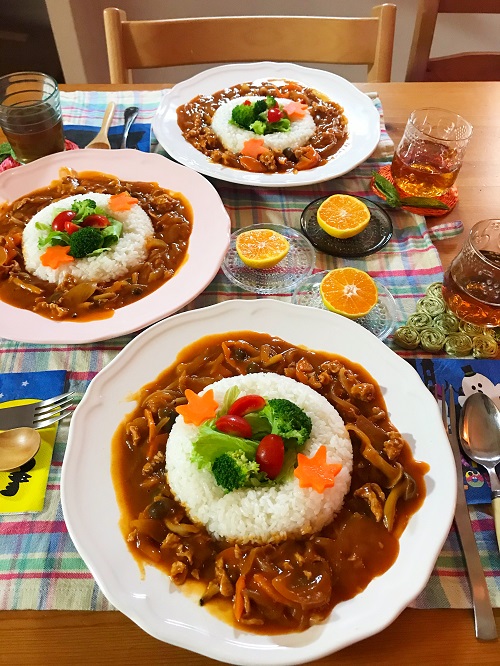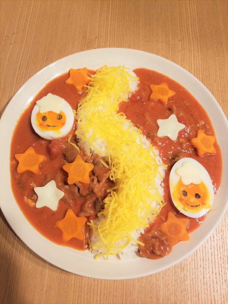 お月見を楽しむハヤシライス♪きのこが苦手でもペロッと完食!絵本ナビスタイル。