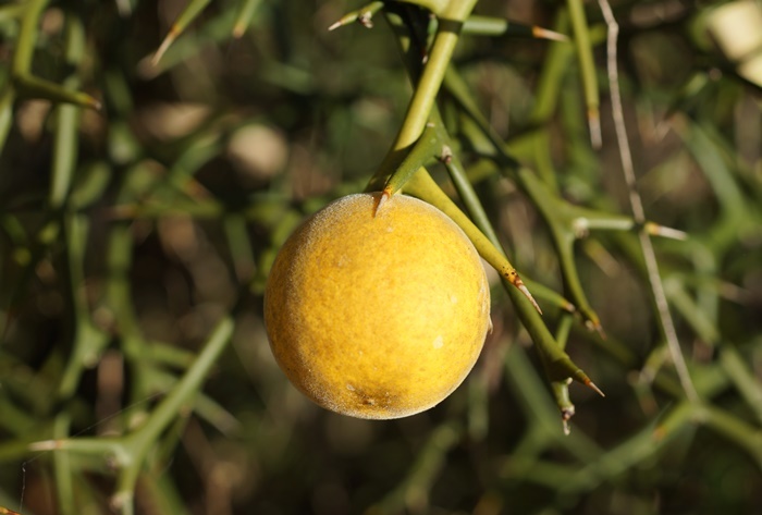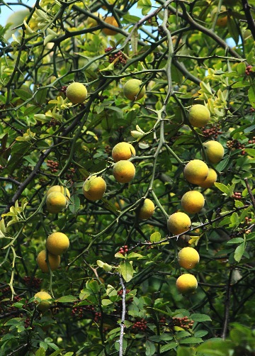 黄色に熟した「カラタチの実」 : 四季おりおりの庭。