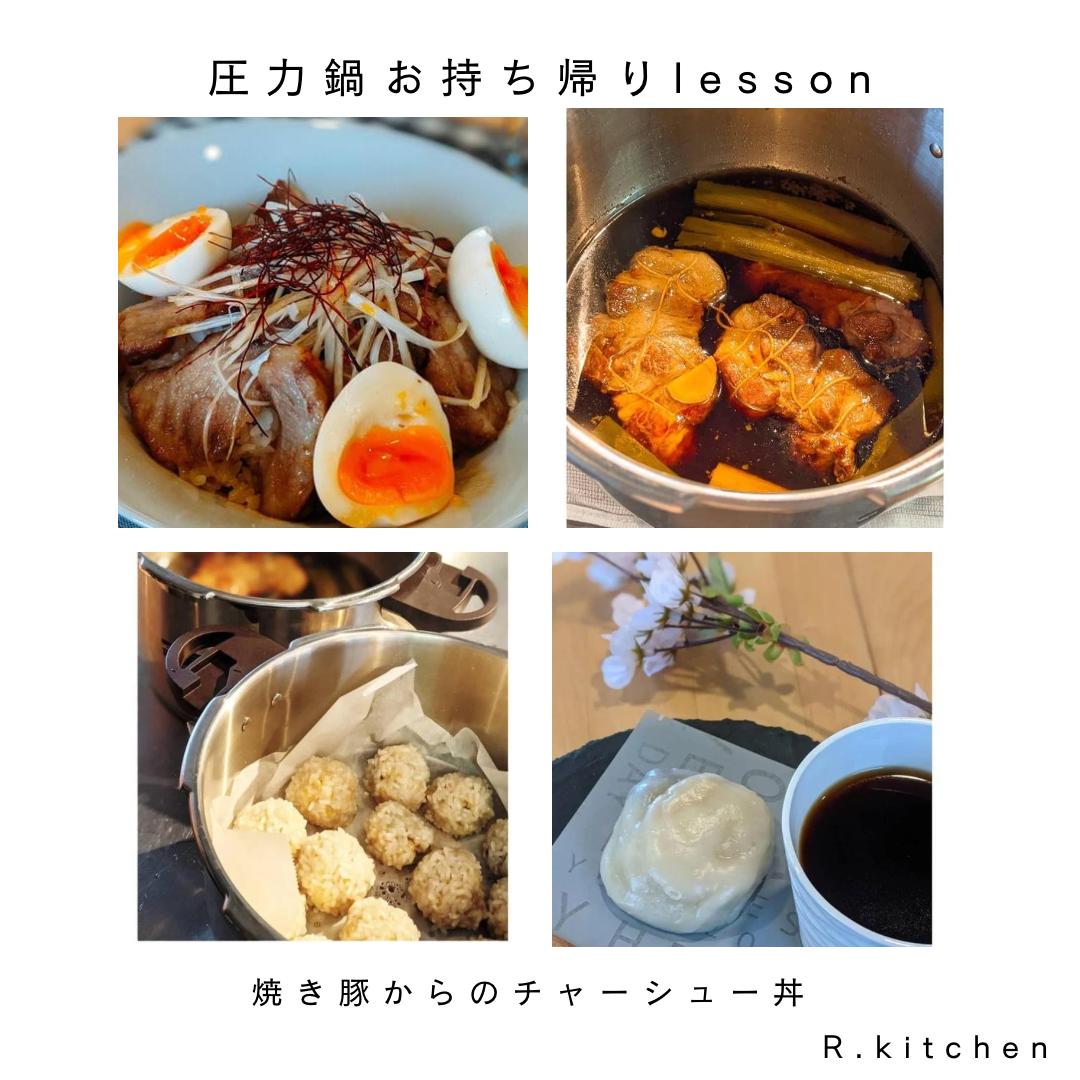 圧力鍋で焼き豚 丼のタレまで &餅米しゅうまい&さつまいも餡のいきなり団子お持帰りレッスン』2025年10月18日開催R.kitchen 福岡県北九州市八幡西区紅梅 の2025年10月レッスン情報料理教室検索サイト「クスパ」。