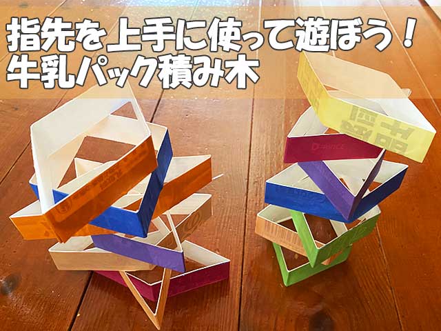 指先を育む「牛乳パック積み木」廃材&100均材料で手作りおもちゃ作り方にじいろランド note園。