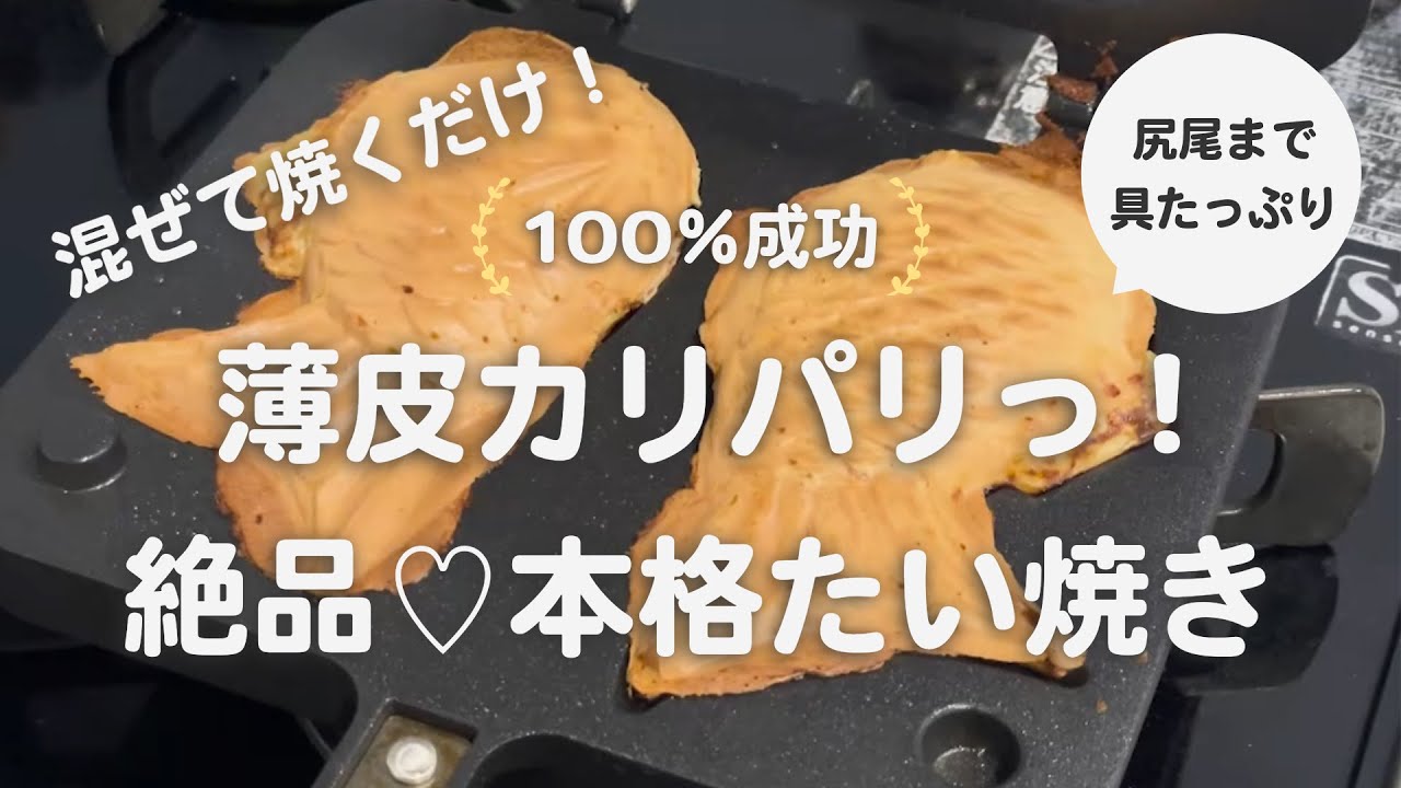 簡単なのにお店級! 本格 絶品 薄皮カリカリパリパリたい焼き混ぜるだけ 卵不使用 サクサク 具だくさん おうち おやつ taiyakirecipe easy。