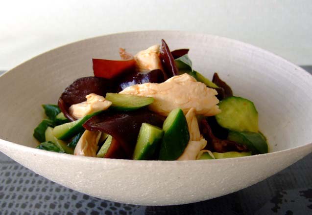 きくらげ、ささみ、きゅうりの中華風和え物,作り方,レシピ鰹節 伏高。